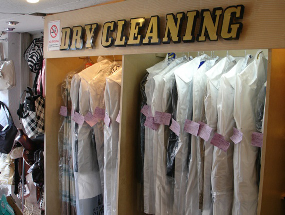 Dry cleaning is the use of solvents to remove soil and stains from fabric. It is called "drycleaning" because the solvents contain little or no water and do not penetrate the fibers as water does. Drycleaning solvent is not harmful to any fabric, and drycleaning is the only safe method for cleaning many types of garments. Natural fibers such as wools and silks will shrink and perhaps lose their color when washed in water, but will dryclean beautifully. Cottons and linens, unless they are preshrunk in manufacture, will also shrink in home laundering. Dry cleaning is particularly effective in removing greasy, oily stains from synthetic fibers, which have an affinity for oils. But the professional drycleaner provides more than just drycleaning. This service also includes professional removal of problem stains that will not come out with simple drycleaning. It also includes professional pressing, careful packaging, and inspections at every step along the way to make sure that all stains have been attended to and the item has been properly pressed and finished.”